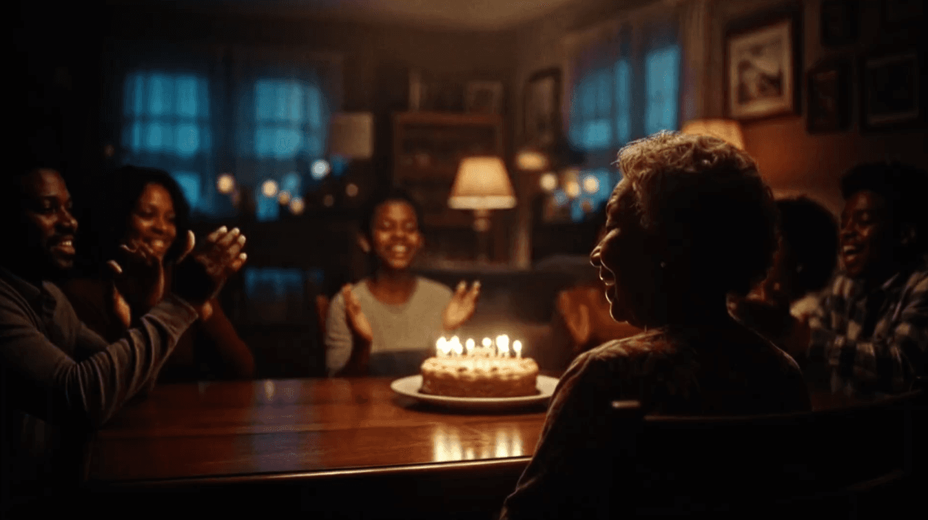Num velho salão de jantar, uma família permanece adormecida à mesa após uma longa noite que ninguém parece lembrar.